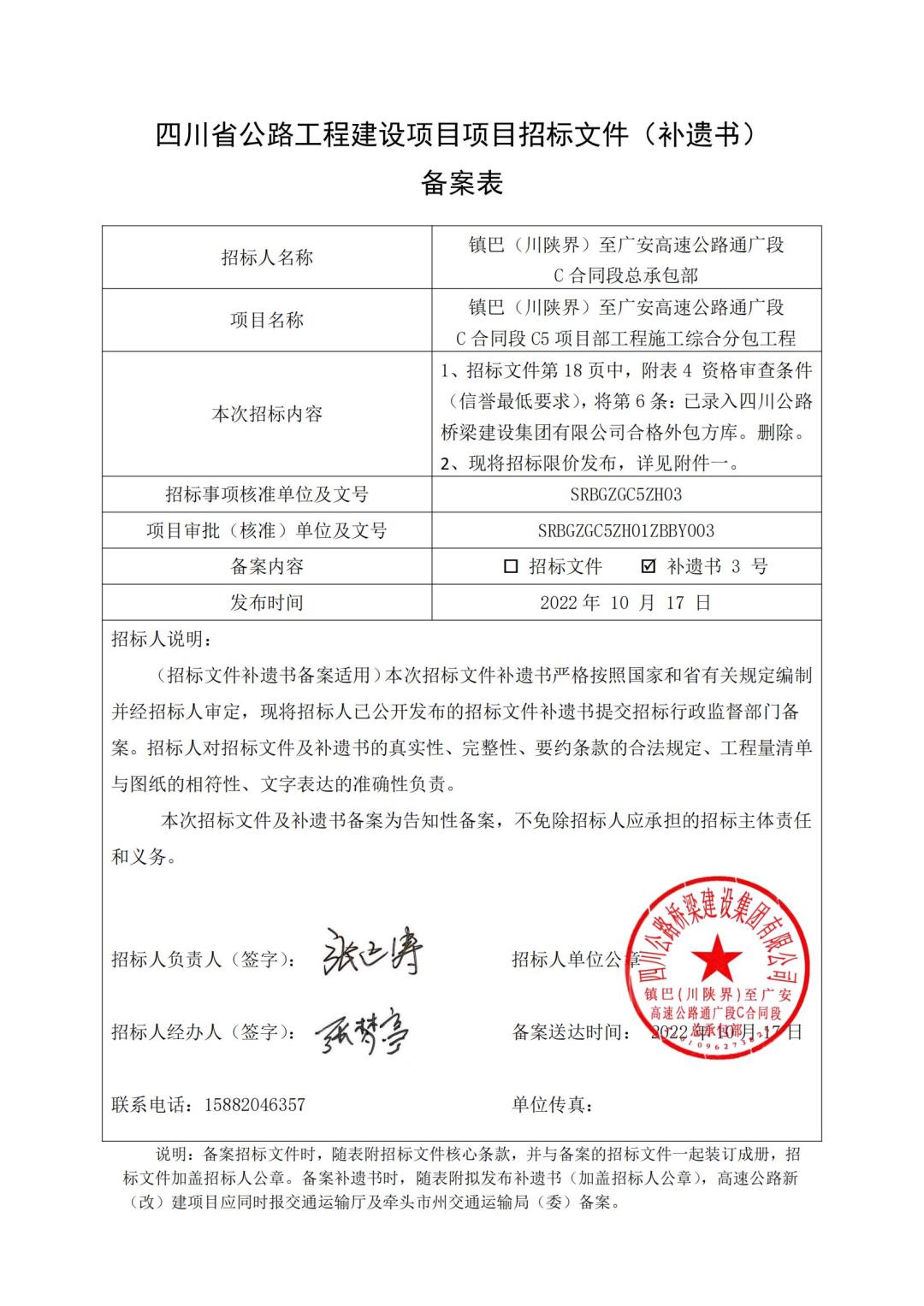 镇巴(川陕界)至广安高速公路通广段C合同段C5项目部工程施工综合分包工程