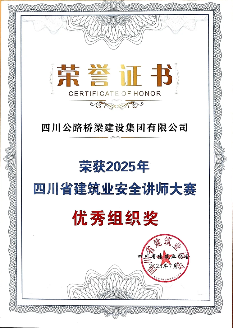 公司在2025年四川省建筑业安全讲师大赛中斩获佳绩,标志着公司系统化推进安全讲师团队建设取得了显著成效,是持续夯实安全生产“三基”(基层、基础、基本功)的生动实践。路桥集团也将以此次大赛为起点,持续完善安全人才培养与讲师梯队建设机制,结合“四类人员”教育,进一步强化安全培训实效,为公司高质量发展构筑坚实安全屏障。